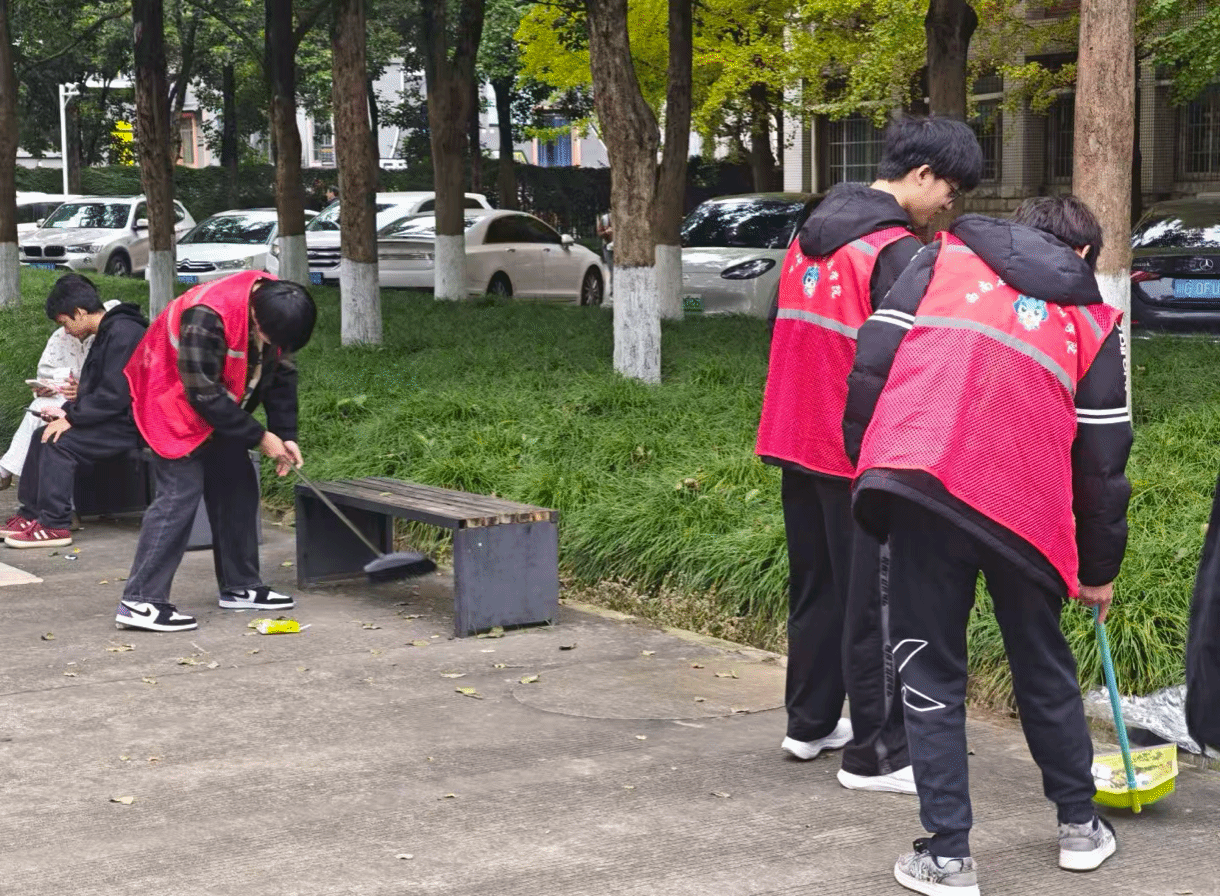 秋意漸濃,午間的校園卻更顯生機盎然。志愿者們身著統一的馬甲在指定集合地點整齊列隊,在負責人簡短而有力的動員講話后,志愿者們按要求分組并井然有序地領取各自的清掃工具,投入到緊張而有序的清掃工作中。各個小組分工明確,任務分配合理,成員間配合默契,工作效率極高:在停車場區域,志愿者們細心清掃地面落葉,同時規整車輛停放秩序,確保停車場整潔有序;在校園道路上,他們來回巡查,不放過任何角落,認真撿拾垃圾,并仔細擦拭路邊的公共設施,使其煥然一新;在教室內,也有專門的志愿者負責整理凌亂的桌椅,認真擦拭每一張桌面,確保教室環境干凈整潔。大家各司其職,充分展現了志愿者們的責任感和奉獻精神。盡管午休時間寶貴,他們卻毫無怨言,全心投入。身影所到之處,留下的是整潔的環境和秋日里的一份溫暖。