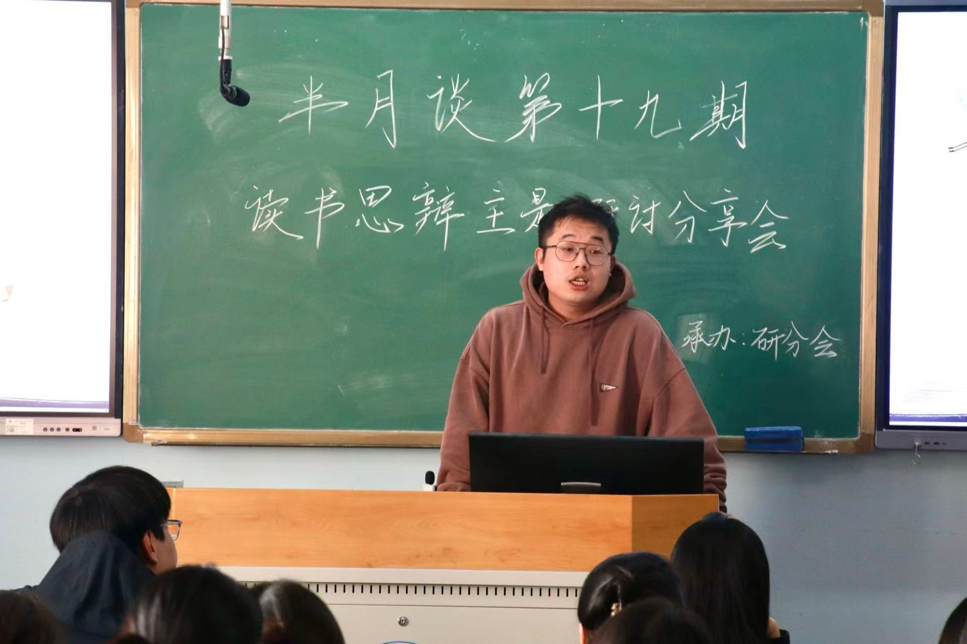 閱讀是治學之基,更是法學學子涵養法治精神的重要路徑。養成良好的閱讀習慣,不僅能幫助青年學子夯實專業功底、錘煉思辨能力,更能拓寬認知視野、深化對法律實踐的理解。為搭建高質量讀書交流平臺,促進思想碰撞、營造“愛讀書、讀好書、善讀書”的學風,2025年11月20日下午14時30分,由西南石油大學法學院主辦、法學院研分會承辦的“西柚法·半月談”第十九期“讀書思辨”讀書分享會如期舉行。法學院六位同學依次登臺分享近期研讀的經典書目,同時邀請了羅實、黃東、董國彥三位老師擔任嘉賓,與現場學子展開深度交流。