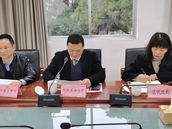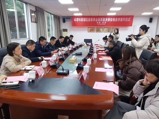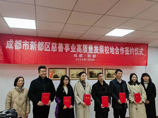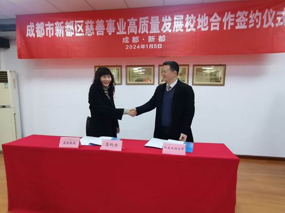 區教育局、區慈善會、區紅十字會、區殘聯、區總工會等部門負責人,成都醫學院、四川音樂學院相關部門工作人員,以及我院社會工作教研室主任夏延芳、副主任張江龍、院團委書記鄧超越參加會議。西南石油大學法學院、成都醫學院教育基金會、四川音樂學院教育基金會與新都區民政局、區慈善會簽訂慈善事業高質量發展合作協議。