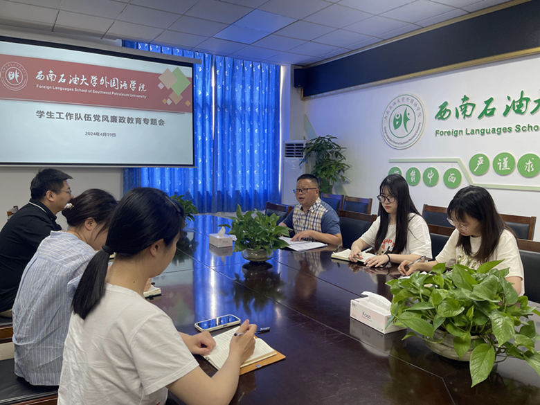 4月19日,我院學生工作隊伍黨風廉政教育專題會議在思學樓AB406會議室召開,會議由學院黨委副書記、紀委書記周永華主持,全體專兼職輔導員參加了會議。