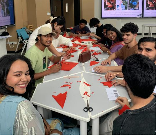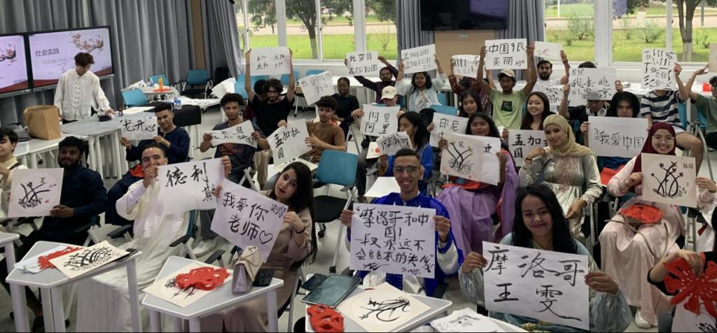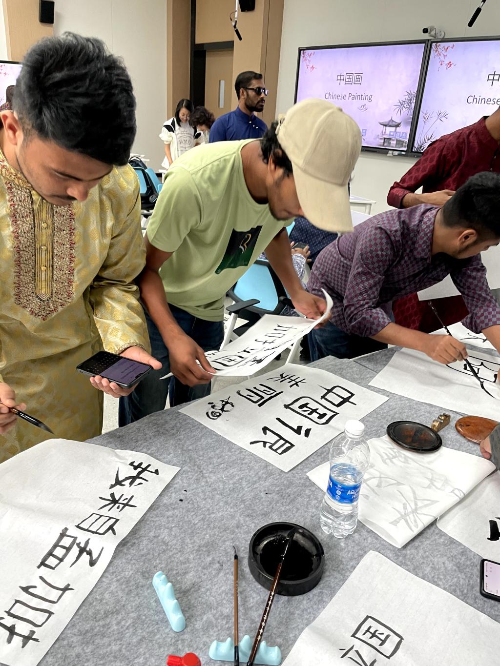 在國畫體驗活動中,國際學生們紛紛嘗試以蘭花為主題進行創作,手持毛筆將墨水和顏料揮灑于宣紙之上。