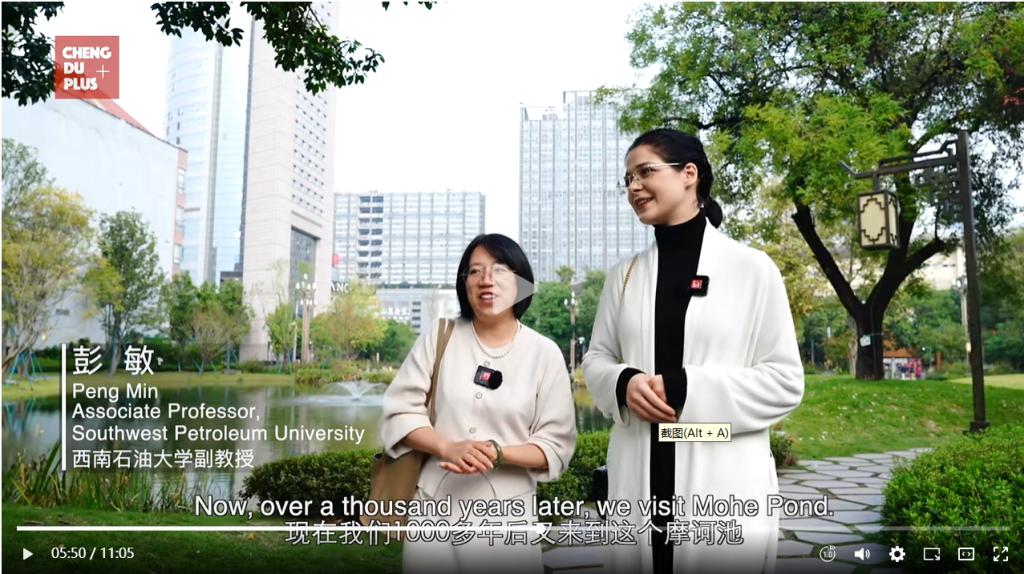 西南石油大學外國語學院/漢語國際教學中心的彭敏副教授近日受邀參與成都電視臺制作的“跟著詩歌去旅行——杜甫的成都生活圈”節目,擔任學術嘉賓。在節目中,彭敏重點為外籍嘉賓及海外觀眾深入淺出地解讀了杜甫在成都創作的詩歌《晚秋陪嚴鄭公摩訶池泛舟》,帶領觀眾回溯古成都名勝摩訶池的歷史足跡,娓娓道來歷代文人墨客對摩訶池的詠唱,以及杜甫在成都期間欲隱而不隱的家國情懷。彭敏近年來在科研上致力于中國古代詩歌文學的研究,在教學上則致力于向國際學生傳授、傳播中國傳統文化知識。此次節目的參與,不僅是彭敏助力中國古典詩學海外傳播的佳例,也是其學術與教學成果的一次生動展示。節目已于2024年12月3日晚在成都電視臺公共頻道播出,并成功推送至境外10多個主流電視媒體平臺,覆蓋全球148個國家和地區,為傳播中國傳統文化和成都地方特色文化做出了積極貢獻。