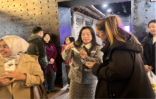 當天上午,滿懷期待的中外師生在人民公園門口集合,開啟了他們的文化探索之旅的第一站——四川保路運動陳列館。在第六展廳寬敞明亮的空間中,外國語學院的老師與英文講解員憑借深厚的專業知識和滿腔熱情,為留學生生動描繪了四川“保路運動”的壯闊歷史及涌現的英雄人物。通過一系列精心設計的鐵路軌道復制品、文物模型、圖文資料等展品,留學生們仿佛穿越時空,親身感受到了四川早期鐵路建設者的堅韌不拔與偉大犧牲。