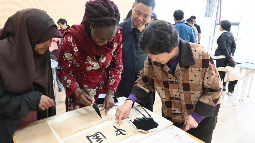 開幕式結束后,嘉賓與觀眾觀摩了獲獎書法作品并參與書法交流活動。參展作品涵蓋中、英、俄等多語種創(chuàng)作,既有傳統(tǒng)詩詞的筆墨神韻,亦融入了現(xiàn)代語言的創(chuàng)新表達,展現(xiàn)了書法藝術的多元生命力。書法交流活動現(xiàn)場,吸引了不少留學生參與學習交流,他們用書法文字,表達了對中國和中國人民的美好祝福。