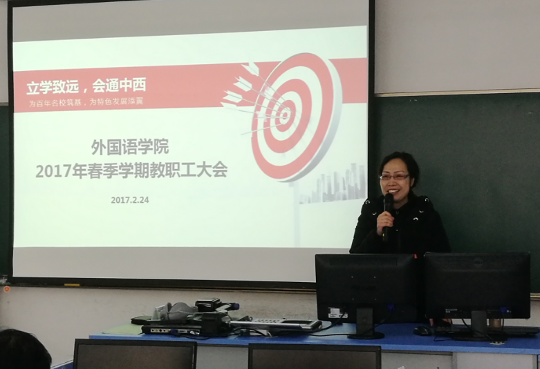 2月25日下午3點在思學樓B307,外國語學院召開全院教職工大會,迎接新學期開學。