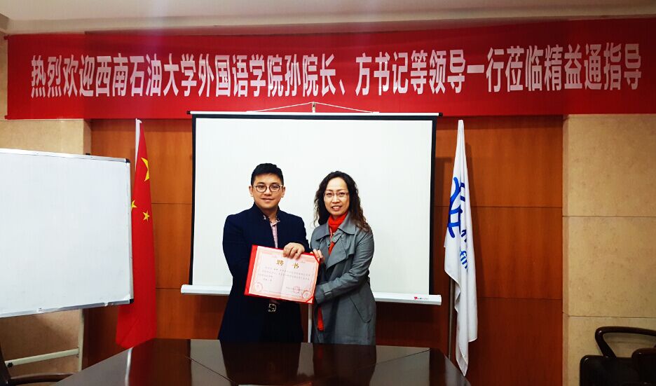 本次合作項目以人才培養、創新創業教育及產學合作為著眼點,展開各領域的合作。成都精益通翻譯有限公司還意向捐贈資金,用于外國語學院的學術學科競賽與學術活動。優秀學生的資料可進入合作公司的資料庫,他們可以獲得與實際翻譯項目合作的機會。針對我校歷史悠久的石油文化,雙方還協商籌建專屬實訓室和石油類平行語料庫,并會出資冠名學生學科競賽和相關學術活動。學院學生可以通過參加講座,到公司參觀、實習,接受公司指導、培訓等方式來提高自身的專業學術水平,更有如“通譯杯”等學術學科競賽來提高翻譯等能力。在合作公司指導開展的創新創業活動中,外國語學院組建的教師、學生團隊需承接一定的翻譯業務。