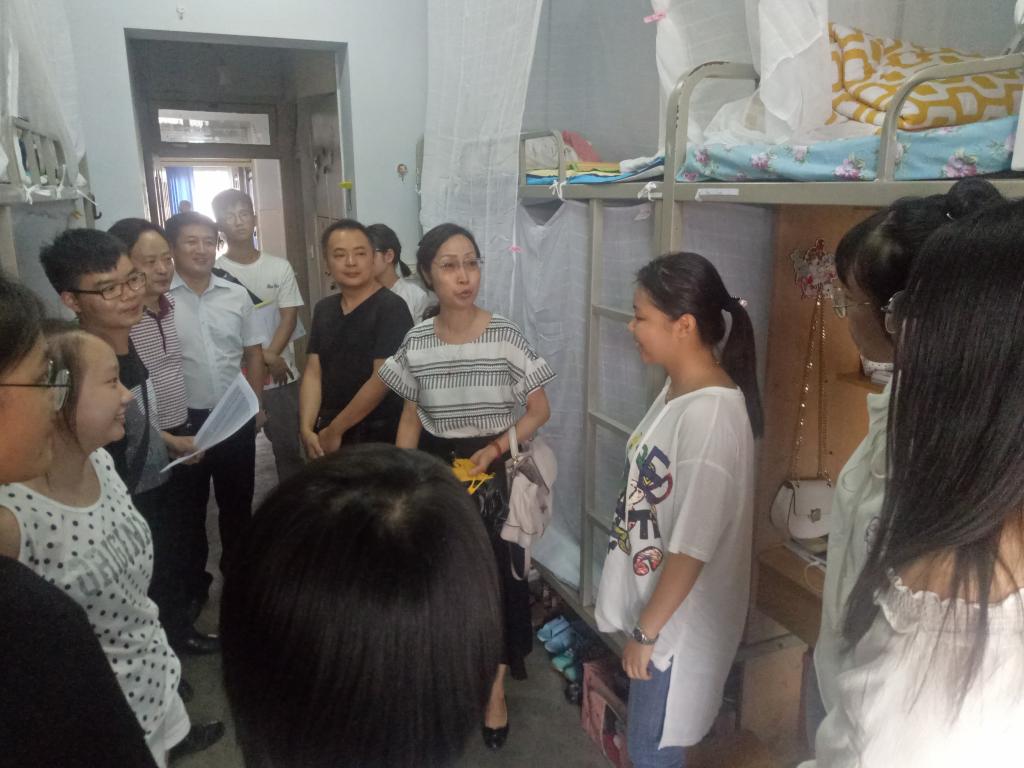為了解新生來到學(xué)校后的生活近況,使新生盡快適應(yīng)新學(xué)校、新同學(xué),盡快融入新的大學(xué)生活;9月9日下午,學(xué)院院長(zhǎng)孫陽,黨委方可書記,副院長(zhǎng)龍仕文,副書記孫德剛,輔導(dǎo)員羅文雙以及學(xué)生會(huì)干部一行來到新生宿舍看望慰問新生。