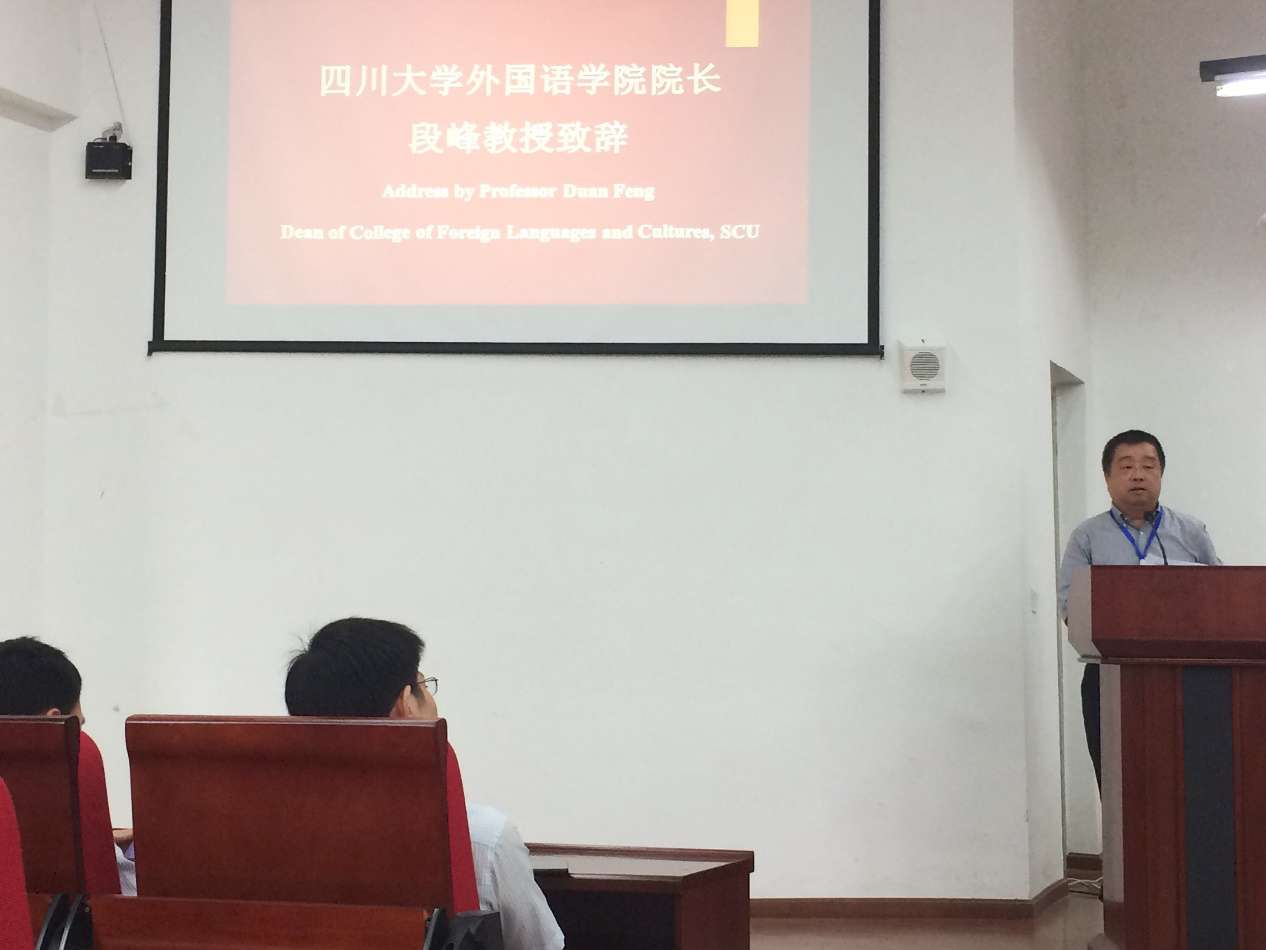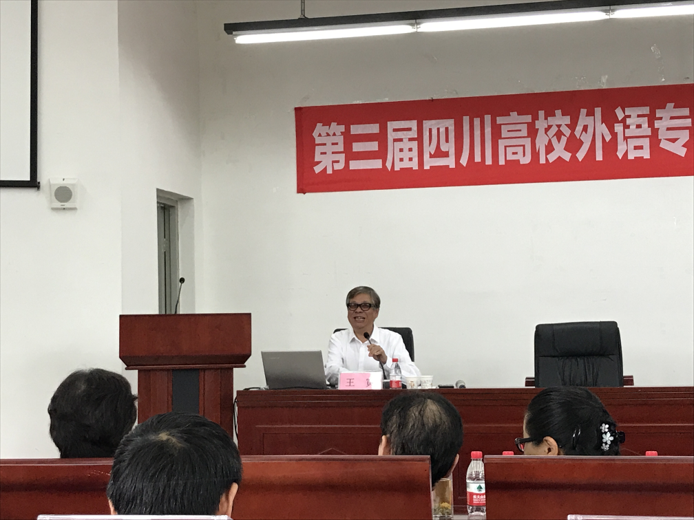 我校外國語學(xué)院院長(zhǎng)孫陽教授、四川省應(yīng)用外語研究會(huì)會(huì)長(zhǎng)李偉彬教授、四川大學(xué)外國語學(xué)院院長(zhǎng)段峰教授、四川外國語大學(xué)博士生導(dǎo)師王寅教授和我校教師代表出席了本次論壇。
