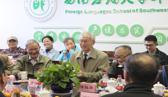 座談會上,校友們暢所欲言,紛紛表達了對母校的懷念之情和對母校的良好祝愿。外國語學院建院人羅增志老師感嘆學院的飛速發展,并講述了建院初期的親身經歷,其中雖有搬木頭、借營房、編教材的艱苦和辛酸,但也不乏歡樂和幸福。羅老師表示雖然“雙一流”建設任務艱巨,但相信我院會再創輝煌。接著,付燦邦老教師談了自己對于西油學子的期待,希望學生能夠沖破名利觀,努力做到一專多能、全面發展。而后英語78級班長張筱莉帶動老校友們進行了一番熱烈的交流,感嘆了班上同學如今都頗有一番成就,校友們散布在全球各地,真正展現出了西南石油桃李滿天下的盛況。