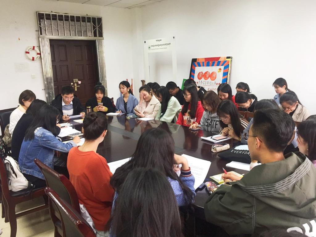 10月15日下午,外國語學院學生第一黨支部在思學樓A408召開對照黨章黨規找差距專題會議,根據“不忘初心、牢記使命”主題教育部署安排,對照黨章黨規,就“18個是否”逐一查擺自身問題、找準問題原因、列出整改措施并進行匯報。本次會議由黨支部書記羅文雙老師主持。