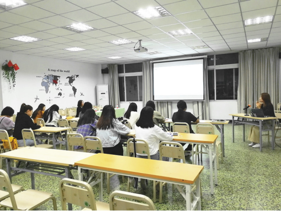 為保證兼職英語教師隊伍建設,提升幼兒英語授課質量,本次活動經過了精心而周密的組織籌備。9月中旬,外國語學院在學校外語角組織了兼職英語教師的面試工作,由副院長(主持工作)呂旭英、黨委副書記孫德剛和英語專業教研室蘭昌勤老師擔任評委,經過同學們英文自我介紹、才藝展示以及與面試老師現場交流,最終選拔出14名兼職英語教師。選拔工作結束后,新都區第一幼兒園先后委派園區楊李娜和王瑩瑩兩位老師多次對同學們進行專業崗前培訓,兩位老師用豐富的教學經驗、有趣的教學模式、新穎的教學方法為同學們帶來了生動的幼教體驗課。