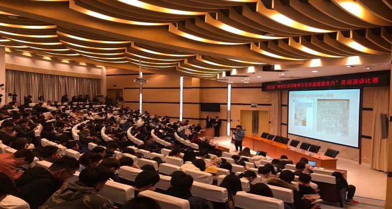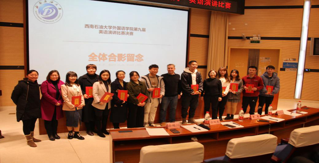 2019年11月28日晚7點(diǎn),由西南石油大學(xué)研究生會(huì)主辦、外語學(xué)院研究生會(huì)承辦的第八屆“研究生科學(xué)精神與學(xué)術(shù)道德建設(shè)月”英語演講比賽決賽在思學(xué)樓A114舉行。應(yīng)邀參加本次決賽的評(píng)委老師有外國語學(xué)院副院長(主持工作)呂旭英、外語院胥瑾老師、孫越川老師,以及外教老師.