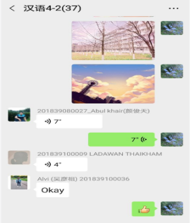 郝曉曦老師將西南石油大學(xué)的春天拍下來發(fā)到其漢語課程微信群中,分散在世界各地的國際學(xué)生爭相回復(fù),有贊嘆有想念有關(guān)愛有鼓勵,大家紛紛表示“希望能早日返回中國,回到西南石油大學(xué)美麗的校園里愉快地學(xué)習(xí)和生活”。泰國學(xué)生樂金平就是其中一員,她的漢語較為出色,線上教學(xué)過程中她積極協(xié)助老師、主動幫助同學(xué),時常關(guān)切地發(fā)微信問候“老師還好嗎,老師加油”,她堅信中國一定能夠戰(zhàn)勝疫情。
