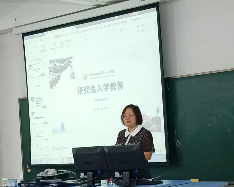 講座伊始,呂院長以問答的形式講到研究生于外要碎堅,于內要細思,強調研究要究其理、尋其根、合其道。接著她就研究生中的“學”與“術”提出了自己的見解,告誡同學們研究生階段要夯實基礎,善用學識之法。然后,呂院長在“道”與“德”兩個方面展開了詳細闡述,并提出在研究階段要明術法、懂規矩、守底線,遵守學術規則,牢記學術道德常識。其次,呂院長以多個例子指出科研和學術活動中的不端行為并強調了學術不端的危害,勸告新生根據研究實事求是,量才選刊,同時也要避免捏造數據、剽竊學術成果、一稿多投等不良行為。講座最后,呂院長特意叮囑全體同學要夯實聽說讀寫基本功,銘記規范,恪守道德,潛心學問,多讀常思,做一名優秀的研究生。