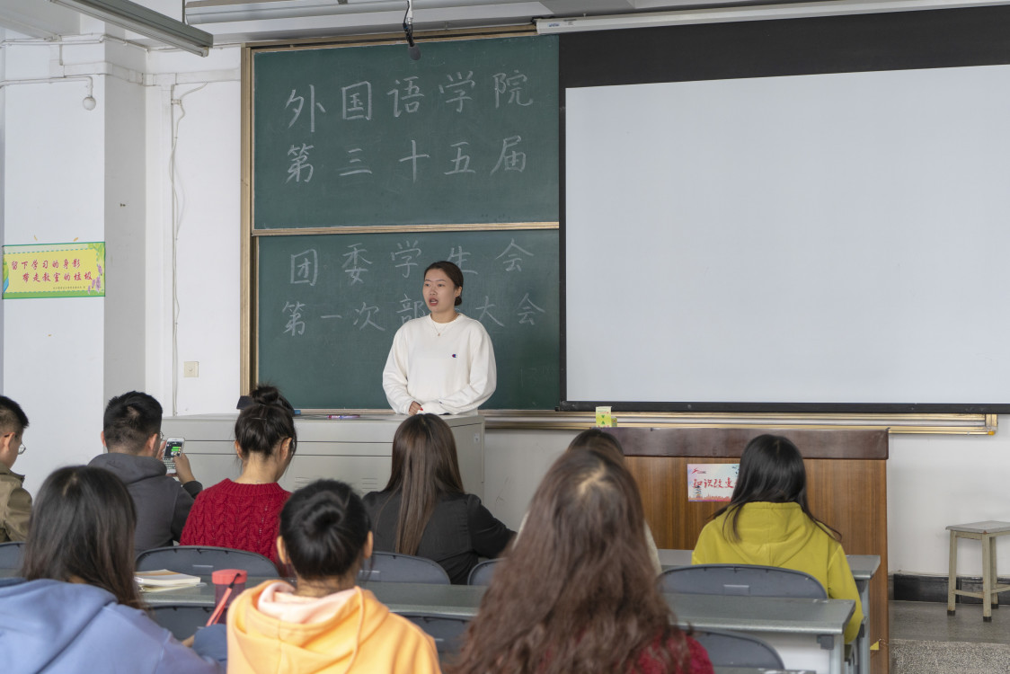 為促進外國語學院學生會各部門工作有序進行,實現部門間合作互助,2020年10月13日中午12:45分,外國語學院第35屆團委學生會第一次部長大會在思學樓B308順利舉行。外國語學院2019級輔導員彭希寧,外國語學院學生會主席潘昱君,團委副書記馮星玥、鄭雨瀟、董鳳陽,社團發展中心主席袁祥崟,全媒體中心主任付彧安以及各部門部長出席本次大會。