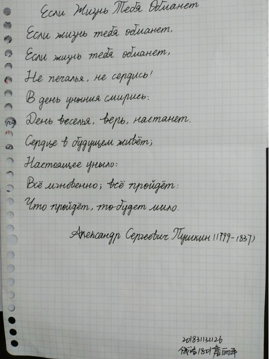 俄語書寫是俄語第二課堂寫訓練的一個必要組成部分,為了鍛煉學生書寫正確率與美觀度,以賽促學,外國語學院俄語專業于2020年10月18日舉辦了俄語書寫大賽。本次比賽由俄語專業2019級和2018級學生共112人參加。經過俄語專業教研室4名教師認真細致的評審,評出了高年級和低年級一二三等獎。
