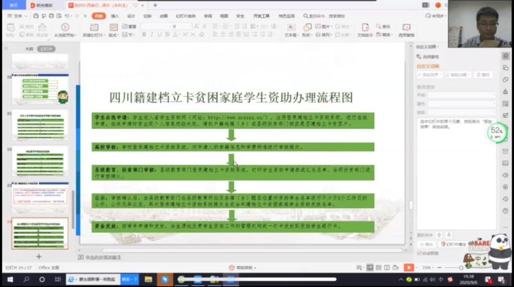 為全面推進資助育人,進一步幫助同學們更好地了解國家、社會和學校的資助政策,外國語學院2017級、2018級輔導員李飛、2019級輔導員彭希寧、2020級輔導員安超通過線上線下平臺面向學院全體本科生共847名同學開展了資助政策宣講“一堂課”活動。