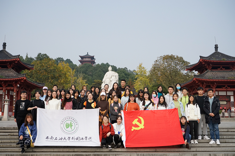 11月8日,外國語學院學生第一黨支部赴江油市“李白故里”開展研學活動,了解李白生平故事,體驗古詩詞文化魅力。本次活動由外國語學院學生第一黨支部書記李飛帶隊,全體黨員、預備黨員參與。