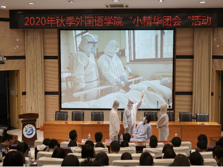 “災(zāi)患無情,人間有愛。”本次團會通過多種形式,向同學(xué)們再現(xiàn)了疫情期間那些動人的瞬間。無論是話劇《攜手抗疫》還是詩朗誦《那雙手》,都表達了對疫情期間無私奉獻的人們的贊頌。“有難一起扛,共分擔才更堅強。”合唱《堅信愛會贏》通過那優(yōu)美的旋律和詩意的歌詞,向人們傳達著中華兒女的團結(jié)與力量。“I will stay with you,等待著日出。”在長笛的伴奏下,兩位女生演唱的《Stay With You》使人更加難忘 。伴隨著時而婉轉(zhuǎn)、時而激昂的背景音樂,演講《2020——不一樣的一年》給同學(xué)們留下了深刻的印象。除此之外,同學(xué)們還觀看了抗擊疫情微紀錄片——《全民戰(zhàn)“疫”》,它記錄了中國抗疫的全過程,讓同學(xué)們回憶起了那些艱難的日子,也提醒著同學(xué)們珍惜如今的安定與和平。活動的最后,全體表演者合唱了一首《明天會更好》,這是對明天的期待,更是對祖國的祝福!在他們的歌聲中,本次團會落下帷幕。