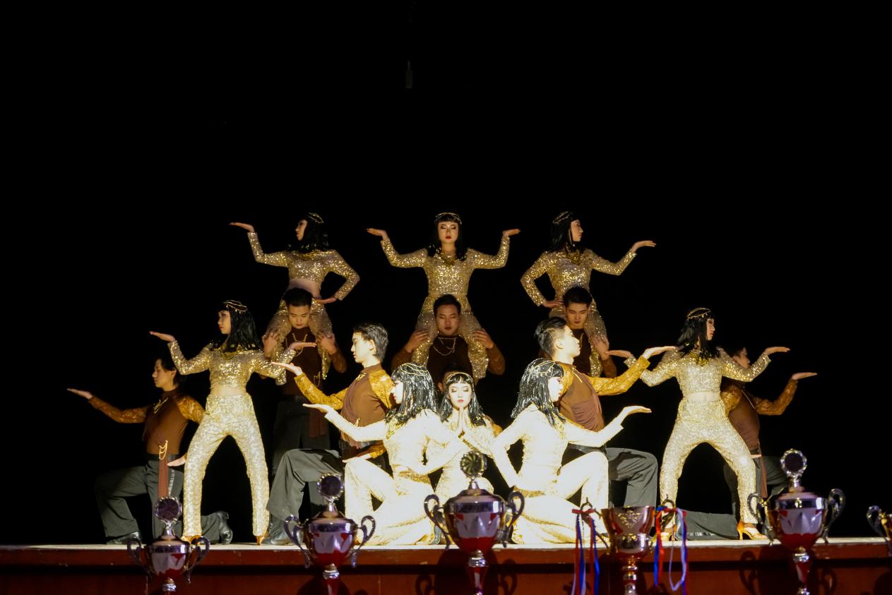 在本次比賽中,外國語學院表現優異,將“學貫中西,開闊視野”的理念融入到了極具藝術表現力的體育舞蹈中。古埃及與中國同為四大文明古國,外語院學子懷揣對古埃及極其曠古悠久的歷史與文化的探索之心,以古埃及文明為背景,將一個個石雕幻化成精靈,憑借一支奇炫的《夢境之旅》以9.66的高分榮獲本次體育舞蹈大賽一等獎第一名,并榮獲體育舞蹈傳承獎。