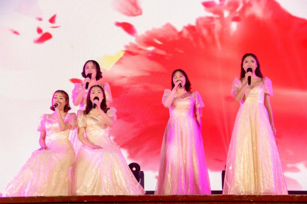 現場絢麗的燈光與觀眾熱情的呼喊相互交織,每一個表演都引觀眾陣陣高呼。外國語學院在本次紅歌賽中表現優異。第一輪比賽中,由外國語學院學生馬瑞、楊依柳、李寶晶、李瑞琳、羅心悅組成的外國語學院紅歌隊演唱了一首旋律悠長的《絨花》。以“絨花,絨花,一路芬芳滿山崖”的絕美姿態展示了外語院學子的青春芳華與錚錚鐵骨。絨花開在山崖,四方皆有芬芳,清亮高亢的歌聲中唱著英雄年代的頌歌。將禮贊融進曲中,勾出幾代人的芳華,盡管時光長河悠悠,但關于青春的音律永不朽。在第二輪“幫幫唱”環節中,馬瑞與外國語學院研究生培養辦公室主任孟祥麗老師以一首輕快愉悅的《我們的生活充滿陽光》用溫柔聲線詮釋我們的陽光生活,表示青春力量同樣可以擁有炙熱奪目的光芒,展現了新中國成立以來人們積極向上,為祖國獻出青春與力量的飽滿熱情。最終,外國語學院在兩輪比賽后以9.65的高分榮獲本次大賽的一等獎。