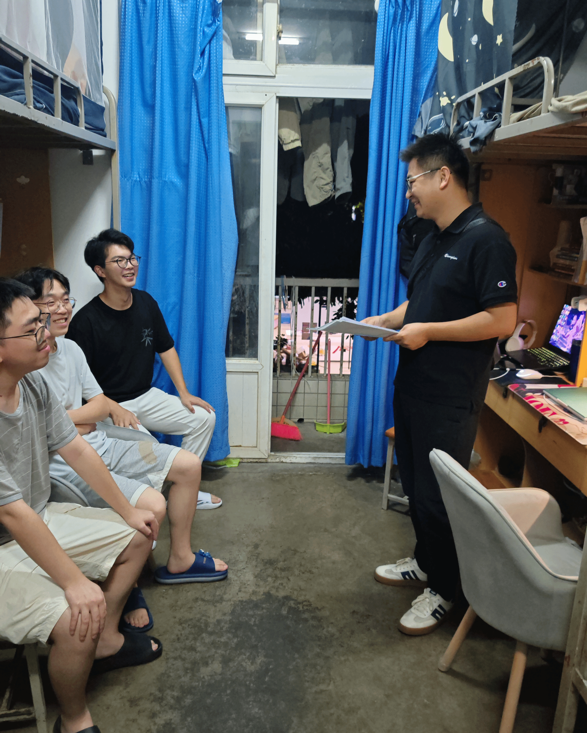 走訪過程中,周永華與輔導員們逐一走進學生寢室,與同學們親切交談。他們細致詢問學生的返校適應情況、學習計劃及思想動態,特別關注同學們的新學期打算。針對部分同學提出的困惑與需求,周永華耐心傾聽并給予鼓勵,希望大家樹立明確目標,積極面對挑戰。