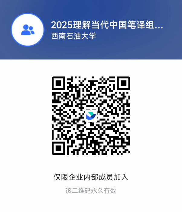 加入賽事官方飛書群:2025“理解當代中國”筆譯組初賽群飛書群鏈接,快點擊https://applink.feishu.cn/client/chat/chatter/add_by_link?link_token=eecgf84a-19d2-4129-800c-2e0e5f07db0b加入吧!