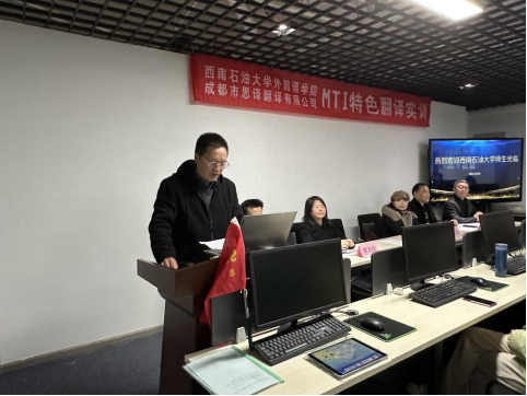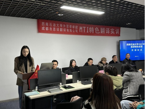 響應(yīng)全國翻譯碩士專業(yè)學(xué)位研究生教育指導(dǎo)委員會文件精神,為提升英語筆譯學(xué)生的翻譯實(shí)踐能力,3月1日上午9時(shí)30分,西南石油大學(xué)外國語學(xué)院2021級MTI思譯特色實(shí)訓(xùn)開訓(xùn)儀式在成都思譯翻譯有限公司隆重舉行。我院黨委書記姚明淑、院長呂旭英等7位學(xué)院領(lǐng)導(dǎo)和老師及2021級英語筆譯的29名學(xué)員,思譯翻譯有限公司董事長章上游、總經(jīng)理黃昌佑及公司項(xiàng)目組成員出席了本次開訓(xùn)儀式。