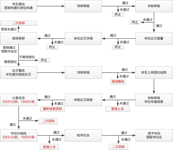 2023年研究生學(xué)位論文答辯和學(xué)位授予只能通過(guò)研究生應(yīng)用管理平臺(tái)辦理,研究生學(xué)位授予流程圖如下。