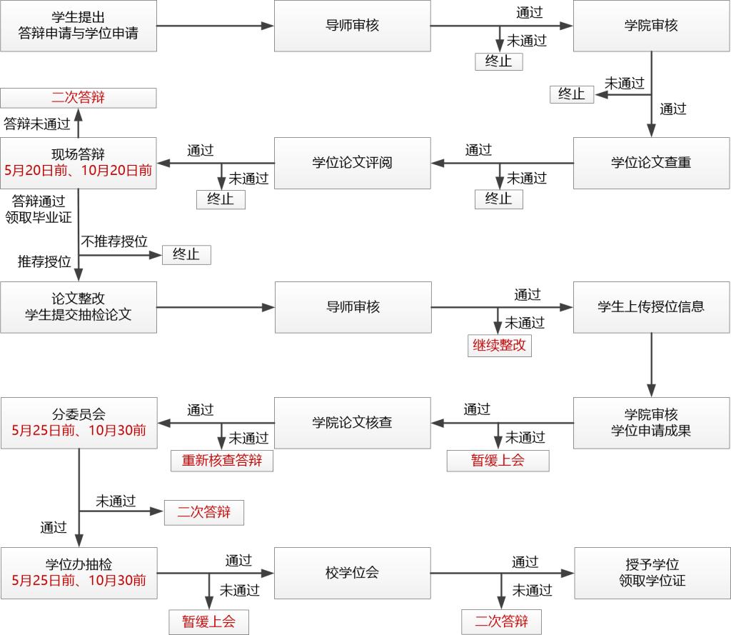 2022年研究生學位論文答辯和學位授予只能通過研究生應用管理平臺辦理,研究生學位授予流程圖如下。
