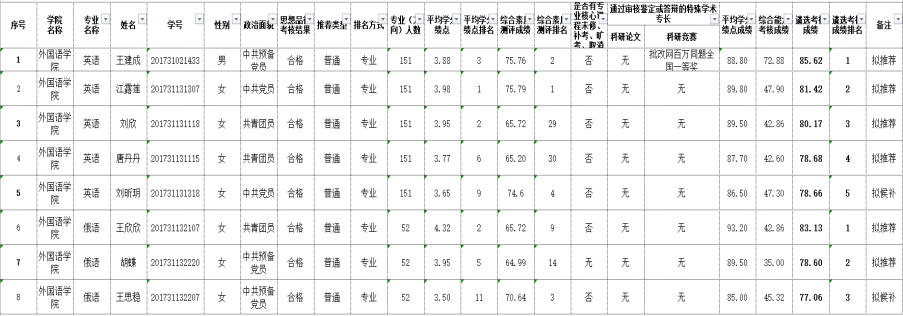 外國語學院關于2021屆推免碩士研究生擬推薦名單進行公示的通知