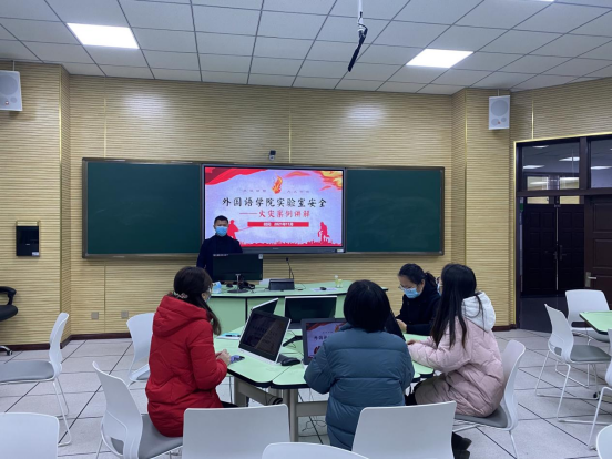 為深刻吸取其他高校實(shí)驗(yàn)室火災(zāi)事故教訓(xùn),確保常態(tài)化疫情防控中外語(yǔ)語(yǔ)言實(shí)驗(yàn)室運(yùn)行安全,保障廣大師生人身安全和校園和諧穩(wěn)定,2021年11月11日下午4點(diǎn),外語(yǔ)語(yǔ)言實(shí)驗(yàn)室在思學(xué)樓B106開(kāi)展火災(zāi)案例講解培訓(xùn),實(shí)驗(yàn)室全體人員參加。