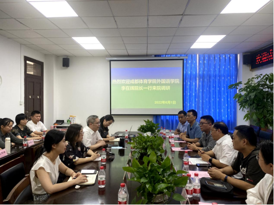 6月1日下午三點(diǎn),成都體育學(xué)院外國(guó)語(yǔ)學(xué)院院長(zhǎng)李在輝、副院長(zhǎng)李航、副院長(zhǎng)袁彬、英語(yǔ)系主任楊鳳軍、英語(yǔ)系副主任張偉英、實(shí)驗(yàn)室副主任何興建、公外部秘書(shū)史夢(mèng)瑩、成都集智享科技公司總經(jīng)理薛海龍一行到我院進(jìn)行調(diào)研,于思學(xué)樓 AB406 開(kāi)展交流研討。會(huì)議由副院長(zhǎng)(主持工作)呂旭英主持。我院副院長(zhǎng)李虎、副院長(zhǎng)陳婧、院長(zhǎng)助理肖燕姣及教研室、實(shí)驗(yàn)室、中心負(fù)責(zé)人出席會(huì)議。