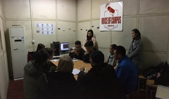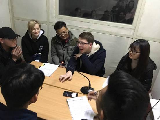 本學(xué)期,口語大賽順利舉行,從第一期到最后一期脫口秀,節(jié)目報(bào)名的嘉賓多達(dá)300余人,其中,參與人員不僅限于英語實(shí)踐的同學(xué),而是許多熱愛英語的朋友們。歷經(jīng)十次常規(guī)脫口秀節(jié)目的錄制后,脫口秀冠軍期即口語大賽決賽也如期到來,2017年12月5日,每期脫口秀節(jié)目的優(yōu)秀嘉賓、留學(xué)生以及外教集聚電臺室,用他們獨(dú)特的思想和流利的英語自由地表達(dá)自己的想法。