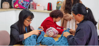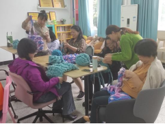 本次巧手編制暖心坐墊活動仍在思學樓D213職工小家順利開展。活動前,色彩豐富、款式精美的針織毛線已早早準備好,教職工們來到現場見到材料如此豐厚,逐漸熱情高漲,入席后紛紛拿起這五顏六色的毛線開始了編織,教職工們轉眼個個變身為“巧手工匠”,按照編織方法說明,一邊實踐一邊琢磨,逐步熟悉了編織的過程和要點。鉤針、掛線、起針、再繞線......數根棒針就這樣在毛線間穿梭,一挑一勾之間,坐墊逐漸出來個大概的模樣。一捆捆毛線就在這勤勞穿梭的瞬間化身成了一張張厚實保暖、造型新穎的坐墊。活動間,大家相互交流經驗、分享成果,現場氣氛其樂融融。