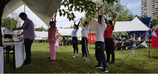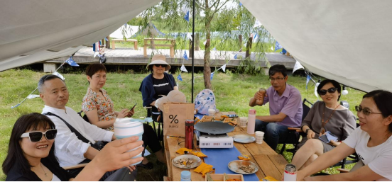 本次活動以露營為特色,教職工們以社團為單位扎營,共同參與了太極“八段錦”、羽毛球、飛盤等等豐富多彩的體育素質拓展項目。教職工們在舉手投足間肆意揮灑汗水,擁抱青春心態,展現活力風采。同時,每個社團營帳中,成員們圍坐一處,一邊呼吸清新的空氣,品嘗美味的小吃,一邊與同事們進行心與心的溝通與交流,拉近彼此距離,增進彼此了解,愉悅疲憊身心。