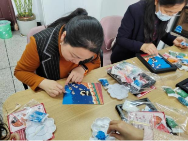 活動中,教職工們用五彩斑斕的紙漿,給自己的作品上色,一手拿鑷子、一手用竹簽,耐心細致地將顏色不一的紙漿鋪疊上去,不一會,一幅幅凹凸分明、生動立體的紙漿畫就呈現在了大家面前。