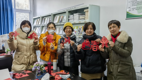 剪紙是我國最古老的傳統民間藝術之一,展現了廣大勞動人民豐富的藝術想象力,反映了對美好生活的向往。本次活動分為剪紙教學環節和剪紙制作環節,教職工們紛紛拿起紅色卡紙和剪刀,一刀一刀剪出對美好新年的期盼。窗花各式各樣、妙趣靈動,有“春”字、中國結、小兔子、鞭炮……在歡聲笑語和熱鬧氛圍中,教職工們面露笑容,互相展示著各自的得意之作。