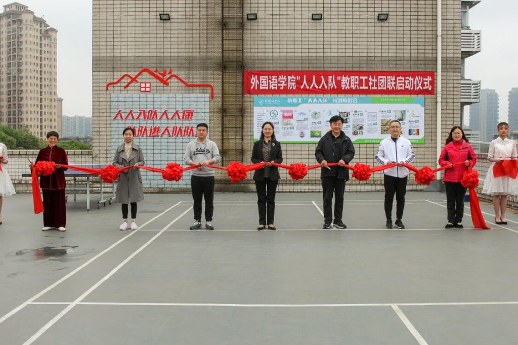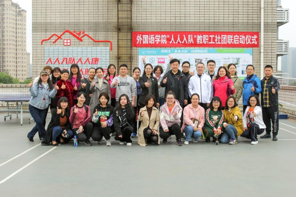 2021年4月9日上午10點(diǎn),外國語學(xué)院在思學(xué)樓A區(qū)5樓素質(zhì)拓展平臺舉行了“人人入隊”教職社團(tuán)聯(lián)啟動儀式。校工會常務(wù)副主席殷沖、外國語學(xué)院黨委書記杜宗良、外國語學(xué)院黨委副書記孫德剛、外國語學(xué)院副院長陳婧、外國語學(xué)院副院長李虎以及外國語學(xué)院教職工社團(tuán)負(fù)責(zé)人和教職工代表出席了啟動儀式。此次啟動儀式由外國語學(xué)院工會主席廖穎主持。