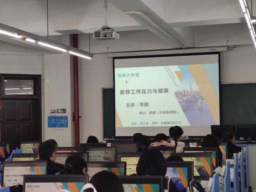 3月11日下午,由校工會主辦,外國語學(xué)院工會承辦的“健康大講堂”在思學(xué)樓B307教室成功舉行。 校工會副主席文武,外國語學(xué)院全體領(lǐng)導(dǎo)以及院校近百名教職工參與了本次講座。本次講座由川北醫(yī)學(xué)院李健教授主講,講座主題為“教師工作壓力與健康”。