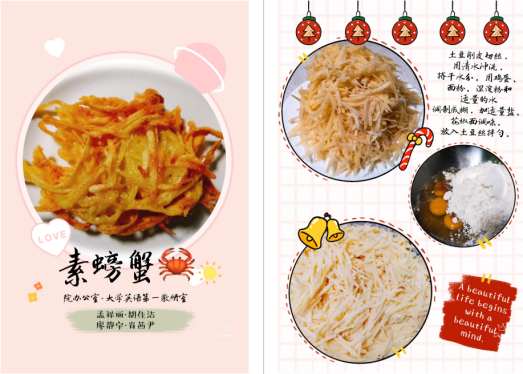 本次“小土豆,大愛心”金陽土豆烹飪大賽采取線下舉辦的方式,老師們通過照片將自己的烹飪流程和作品以圖片和文字的方式記錄呈現,最終由院工會綜合進行評選。老師們都拿出了自己的絕活,各種土豆烹飪方法紛紛亮相,最終老師們總共展示了包括“土豆泥蛋糕”、“素螃蟹”和“土豆燉排骨”等等在內的三十余道佳肴。
