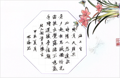 書寫大賽中,參賽教職工們以毛筆或硬筆書法視頻展示了他們對經(jīng)典的理解和書寫功力。鄧海龍老師的書法作品《望月懷遠》尤為突出,他以其精湛的筆法,將張九齡的詩句“海上生明月,天涯共此時。”展現(xiàn)得淋漓盡致,筆勢流暢,氣韻生動,既傳達了詩中濃厚的情感,又體現(xiàn)了書法藝術(shù)的獨特魅力。鄧老師的作品不僅展示了他扎實的書法功底,也反映了他對傳統(tǒng)文化的深厚情感。