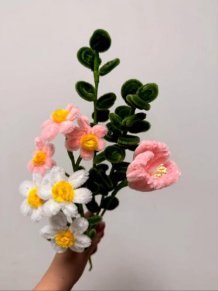 來自全校各單位的教職工在視頻指導(dǎo)下,獨立完成了花束制作。有人偏愛粉白相間的百合花,花瓣柔美、造型挺拔;有人選擇明快的黃色雛菊,花心點綴間流露出陽光的氣息;也有人搭配藍星花與綠葉,組合出清新淡雅的花束。盡管大家制作的場所不同,但每個人都在扭轉(zhuǎn)與纏繞之間,找到了手工帶來的平靜與喜悅。老師們表示,視頻教學(xué)的形式既靈活又貼心,能夠根據(jù)自己的節(jié)奏學(xué)習(xí)和創(chuàng)作,在輕松的氛圍中感受到了“慢生活”的美好。
