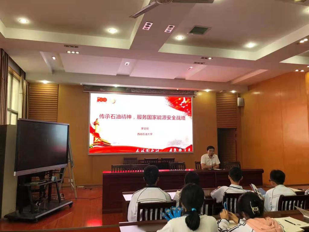 簽約授牌和捐贈(zèng)儀式結(jié)束后,羅文雙分別向三所中學(xué)的高三學(xué)生代表做了題為“傳承石油精神,服務(wù)國家能源安全戰(zhàn)略”的宣講報(bào)告。