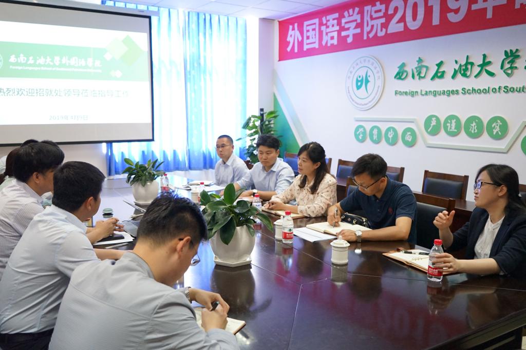招生辦公室副主任陳奕宇就招生工作談到,感謝外國(guó)語(yǔ)學(xué)院對(duì)學(xué)校招生工作的大力支持,在上學(xué)期末組織的“感恩高中母校,分享石大青春”活動(dòng)中,我院報(bào)名率與完成率均居于學(xué)校前列。他建議學(xué)院要堅(jiān)持走進(jìn)中學(xué)進(jìn)行專業(yè)宣講工作,招生就業(yè)處將不遺余力給予支持。