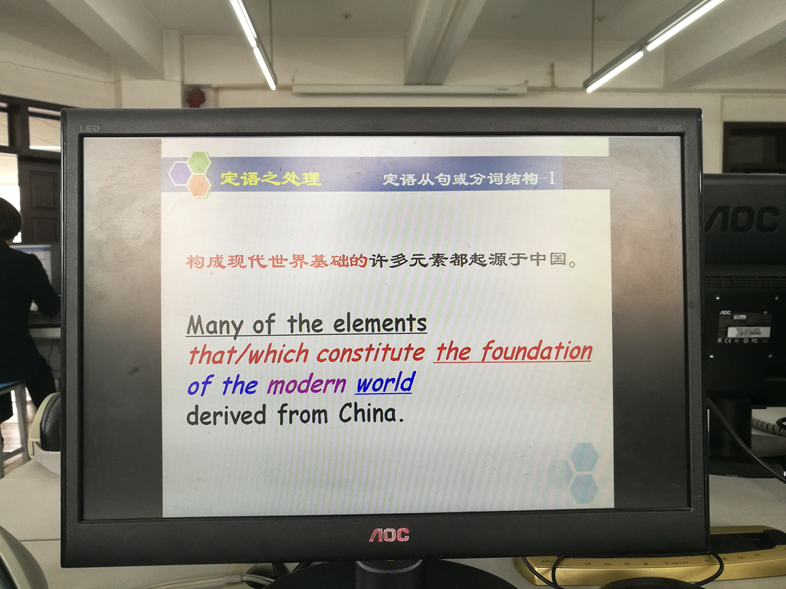 魏夏春老師的講座以四、六級真題翻譯為基礎,先介紹了首先獲取了句型結構再增加定語修飾成分的核心原則,再從形容詞、介詞短語、分詞短語、從句四個方面舉例詳述了定語的處理方式。通過對四、六級翻譯真題解析,細致而清楚地道破四、六級翻譯高分策略,同時指出了提高翻譯成績的方法。