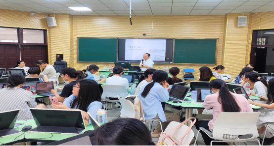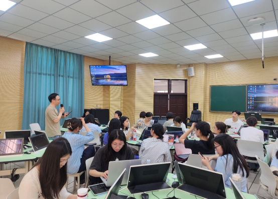 首日講座中,滕鋒教授以《文獻(xiàn)的搜索、組織和寫作方法:從圖書館到人工智能》為題,系統(tǒng)梳理文獻(xiàn)研究的技術(shù)演進(jìn)。通過對比傳統(tǒng)手工檢索與AI驅(qū)動的智能分析,滕教授深入解析自然語言處理技術(shù)在文獻(xiàn)推薦、觀點提取中的革命性作用,并強(qiáng)調(diào)“人機(jī)協(xié)同”中學(xué)術(shù)倫理的邊界把控。貝曉越教授則從研究設(shè)計方法論切入,通過量化、質(zhì)化及混合研究案例,為教師厘清問題構(gòu)建、數(shù)據(jù)采集與倫理規(guī)范的核心邏輯。下午的SPSS實操培訓(xùn)中,貝教授以分步演示引導(dǎo)教師掌握包括獨立樣本T檢驗、配對樣本T檢驗、單因素方差分析及Pearson相關(guān)性分析等在內(nèi)的核心統(tǒng)計分析方法,現(xiàn)場互動熱烈。