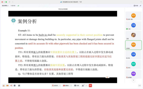 在這次研討中,除了解決了我自己提出的問題,老師們還從案例中指出了另一些我沒發(fā)現(xiàn)但真實存在的問題。如部分句子的表達上還存在著不夠準確和流暢的問題。有時候我會過于依賴字面意思,而忽視了整體語境的影響,導(dǎo)致翻譯的結(jié)果不夠自然。老師們針對此類問題逐一給出了她們的見解,我也進一步學習了如何加強對語境的理解和分析能力,以提高翻譯的準確性和流暢度。