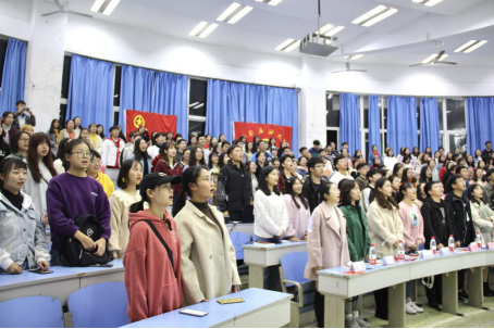 2019年11月14日晚,外國語學院“獻禮祖國七十載,共筑中華復興夢”小精華團會于思學樓B110順利舉辦。出席本次團會的嘉賓有外國語學院輔導員羅文雙、李飛,學生會主席團成員,各兄弟學院學生代表以及外語院的同學們。