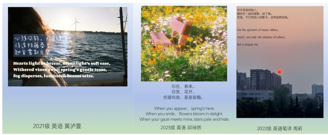 此次活動作品內(nèi)容多樣,設(shè)計創(chuàng)新,配圖精美,有的敏銳捕捉生活中的確幸,有的靜靜感受身邊的美好,有的深深領(lǐng)悟旅途的意義……我們深切感受到了同學(xué)們細(xì)膩的文筆與豐富的感情。同時,所有的優(yōu)秀作品將在學(xué)院學(xué)生會辦公室展示欄進(jìn)行展出,歡迎大家前來參觀欣賞。